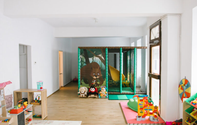 Das Highlight: Eine abenteuerliche Indoorspielanlage mit Rutsche, die direkt ins Bällebad führt – ideal für Kinder bis ca. 10 Jahre. Der restliche Spielraum enthält eine Leseecke, eine Babyecke, Bewegungsspiele, eine Puppenküche und eine Auto-Spieleecke. Diese Bereichen werden auch immer mal wieder ausgetauscht, sodass immer genügend Spielmaterial für Kinder vorhanden ist.