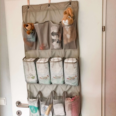 Du könntest dir aber auch einen Schuhorganizer an die Wand oder Tür neben dem Wickelplatz hängen und dort alles Notwendige aufbewahren.