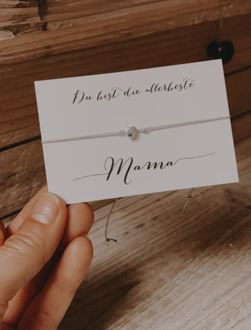Du bist die allerbeste Mama Es gibt vielleicht Tage, da fühlst du dich wie die schlechteste Mutter im Universum. Bist du aber sicher nicht. Du bist die allerbeste Mama für dein Kind. Der Herzchen-Armband soll dich daran erinnern. Behalte es am besten selbst oder schenk es einer lieben Freundin, die ein paar aufmunternde Worte gerade brauchen kann. Das Armband ist von Katharina Schatzl. In ihrem Online Shop findet ihr außerdem Meilensteinkarten, Dankeskarten und viel mehr schönes für dich und dein Baby. Schaut vorbei.