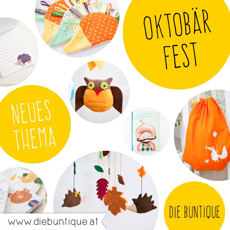 Drei Selbermacherinnen betreiben Die Buntique, einen total entzückenden Laden in der Kirchengasse 26. Derzeit geht es herbstlich zu - das Ladenthema im Oktober: Oktobärfest. Dazu passend findest du liebevoll Genähtes, knallbunt Designtes und fröhlich Gezeichnetes. Es gibt fröhliche Igel-Mobiles, Knistertiere, Fingerpuppen, Grußkarten und viel schönes aus Papier.