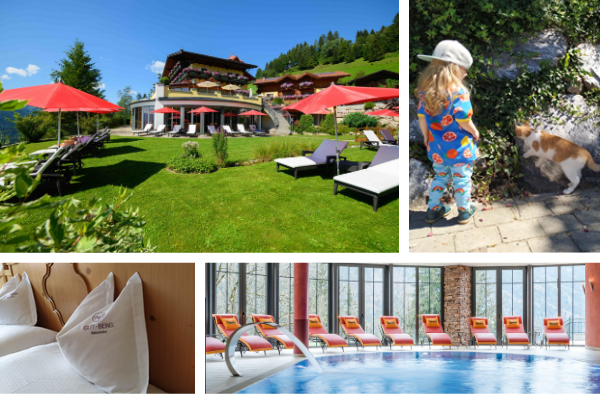 Pressereise - Angekommen im GUT BERG Naturhotel am wunderschönen, sonnigen Berg mit Ausblick über das Salzachtal, begrüßt uns ein kuscheliger rot-weißer Kater. Wie wir gleich darauf erfahren handelt es sich dabei um Garfield, den Schlawiner, der die kleinen und die großen Gäste erfreut.