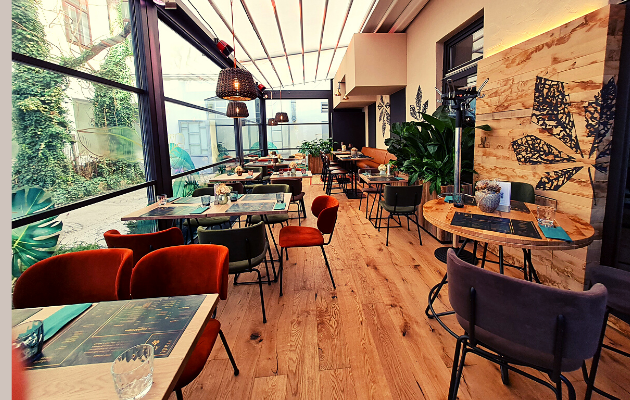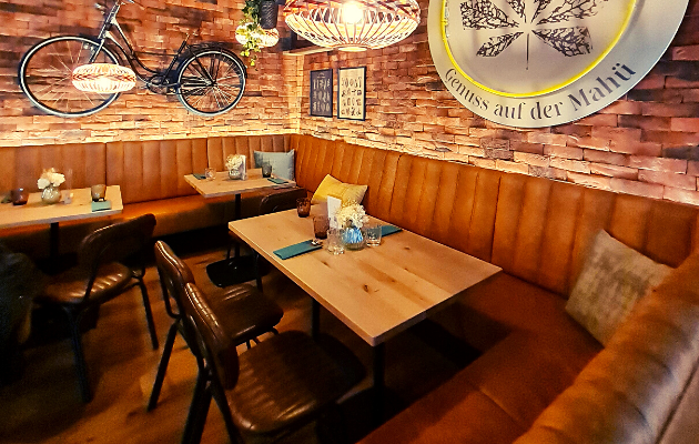 Für Babymamas empfehlen wir die kuschelige Sitzecke etwas weiter hinten. Hier kann das Baby auch ein bisschen auf der Bank liegen. Sitzt das Kind schon gerne im Hochstuhl (vorhanden!) ist auch ein Platz im Wintergarten sehr schön, da man das Treiben im Durchgang beobachten kann.