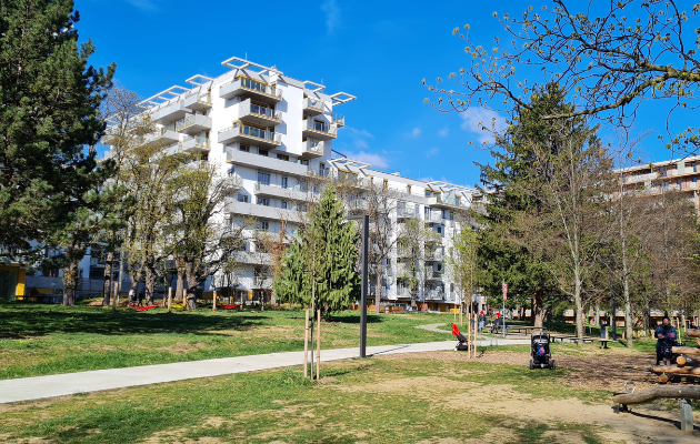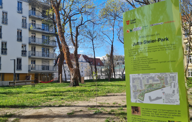 In der Spallartgasse wurde ein altes Gelände des Österreichischen Bundesheeres mit vielen Neubauten neu gestaltet. Was von außen wie eine zubetonierte Riesen-Wohnhausanlage wirkt, entpuppt sich als wirklich netter Park mit vielen Spielmöglichkeiten - der Jutta-Steier-Park. Durch den alten Baumbestand, ist es auch im Sommer hier schön schattig und es gibt wirklich viele Spielgeräte, die sich auf das gesamte Gelände verteilen: Rutschen, Sandkisten, Klettergerüste, Schaukeln, Balancierstrecken und natürlich auch einen Babyspielplatz für die Kleinsten.