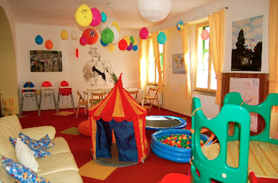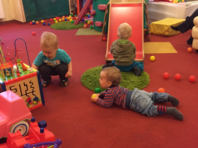 Hier gibt es ein unglaublich großes Angebot für die Kleinen, fast schon zuviel. Denn speziell ganz kleine Babys sind fast erschlagen von der Fülle an Spiel und Zeug hier. Geboten wird hier alles von der Indoor-Schaukel über ein Bällebad, Rutschen, Autos, Puppenwagen, Bücher, Puzzles und Sachen zum Verkleiden! Langweilig wird's den Kleinen hier sicher nicht während Mama sind Kaffee und Kuchen gönnt. Inhaberin Gudrun Augusta verkauft Getränke, Kuchen und einige Kleinigkeiten wie Toast. Aber es besteht kein Konsumzwang, gerne können Speisen und Getränke mitgebracht werden und natürlich kann Babynahrung gewärmt werden.