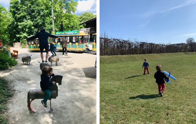Ich finde die Stadt Wien hat unglaublich viele und schöne Spielplätze zu bieten. Wir sind jedoch meistens an Orten, die von Althietzing auch gut öffentlich erreichbar sind. Sehr schön ist der Waldspielplatz im Dehnepark. Abwechslungsreich und spannend ist auch der Casino Baumgarten Park. Gerne schwelge ich auch in Erinnerungen mit meinen Kindern im Resselpark, wo mein Lieblingsspielgerät aus meiner Kindheit immer noch in Verwendung ist. Schön finden wir aber auch den Schweizergarten im Arsenal.