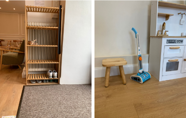 Alle Spielmaterialien sind sorgfältig und gut überlegt ausgewählt und sehr hochwertig! Besonders gemütlich schauen die 3 Fensternieschen aus, die zum Lesen, Kuscheln und Verweilen einladen.