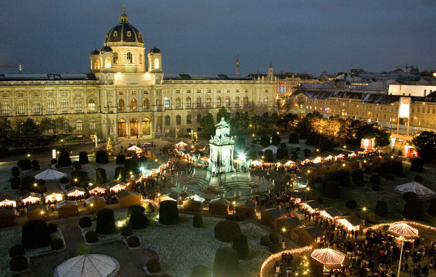 Und zu guter Letzt ein wahrlich imperialer Weihnachtsmarkt: das Weihnachtsdorf am Maria-Theresien-Platz, zwischen dem Kunst- und Naturhistorischen Museum. An den zahlreichen Verkaufshütten laden die Aussteller mit ausgefallenen Geschenksideen und traditionellem Kunsthandwerk zum Kaufen und Verweilen ein. (17.11. - 26.12)