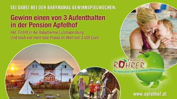 Wo verbringt ihr euren Urlaub? Den ersten Urlaub mit Baby? Die Babytherme Lutzmannsburg im Burgenland ist eine beliebte Destination. Keine lange Autofahrt, baby- und kindertauglich und auch etwas Entspannung für die Eltern. Wohnen könnt ihr in der Familienpension Apfelhof ganz nah bei der Therme in Lutzmannsburg.