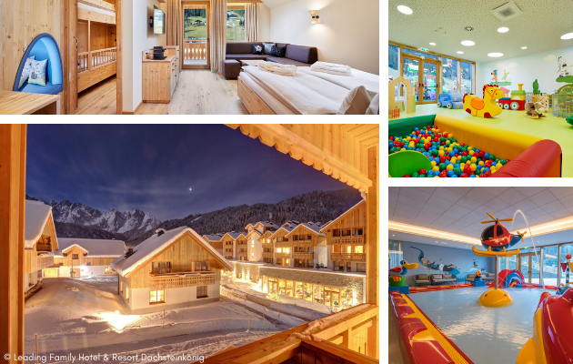 Abwechslungsreiche Kinderbetreuung für Kinder ab 3 Jahren durch geschulte Pädagoginnen (8 Stunden täglich), spannende Spielbereiche aus natürlichen Materialien und modernste Ausstattung lassen die Tage für die gesamte Familie wie im Flug vergehen. Das Kinderprogramm verspricht außerdem, dass jede Minute auf der Übergossenen Alm zu einem wahren Abenteuer wird. Im Winter geht der Spaß in der direkt angeschlossenen Kinder Skischule weiter, das Hotel liebt direkt an der Piste!