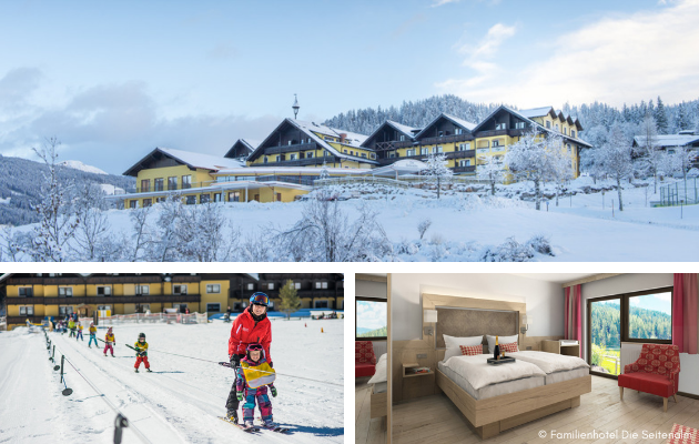 Vor der Haustüre werden die Skier angeschnallt und ab geht es auf die Piste, die direkt neben dem Hotel liegt. Im Zwergen-Skikurs können Kinder ab 3 Jahren mit lustigen Comicfiguren, Zauberteppichen und spannenden Geschichten spielerisch zu Pistenflitzern werden.